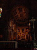 でもって、となりは修道院のとなりにある大きなティールーム。ここが日本でもはやった”エッグタルト”で有名なお店。ここがオリジナルなんだか、修道院のレシピでつくっているから古いのかよくわかりませんが、とにかくエッグタルトといえばここらしい。ポルトガル語ではパスティシュ・デ・ナタというらしい。とりあえずテーブル席についてボーイさんを呼び止めてみるとメニューはないよとのこと。パスティを食べたいの?と聞かれたので、それそれ!と答えると「何個?」という質問。へ?そんなにたくさん食べるものなのか?私が不思議そうな顔をしていると「小さいからね。大抵2つは食べるよ。」ということなので、2つ頼んでみる。でついでにそろそろコーヒー切れだったので、ミルクコーヒーってある?(ポルトガル名がわかんなかった)と頼んでみたら、グラスに入った甘いカフェオレみたいなものを持ってきてくれた(少しくたびれてたのですごくおいしかった)。パスティはシナモンがかなりしっかりかかった、カスタードのパイみたいなもの。日本で食べたエッグタルトとはタルトj地がぜんぜんちがって、さくさくした食感。ぺろりと2つたべてしまった。カスタードももたっとしてなくて、あつあつをとろとろで食べるので甘いのが苦手な人でも大丈夫かも。パンフによれば高温のオーブンで短時間で焼くのがいいんだそうな。ポルトガルのカフェはみんなガラスのショーケースにいっぱいおいしそうな菓子がならんでいてとても楽しい。ここにすんでたら太るだろうなあ。