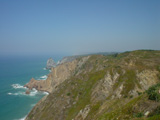 ロカ岬はユーラシア大陸の西端。当然そんなところまで電車があるわけもなく、シントラの駅前からバスに乗ります。しかし、これがものすごい山坂。ものすごい坂の上り下りに加えて、かなり荒っぽい運転。前の方で白人の女性が黒人の女性を怒鳴りつけているので、なにが起きたのかと思ったら、気持ち悪くなって吐いてしまったらしい。異臭もするし、大変だなあと思っていたらとなりから「ビニール袋持ってない?」の声。一緒にいた中国人の彼女も気分が悪くなっていたんですね。私本人は山坂がすごいとはいえ、その分うねうねとした畑や牧草地が見えるわけで、そろそろ海が見えるかなあなどとのんびりしていたので、かなりびっくりしました。しょうがないので本を買ったときの袋をあげて、背中をさすり、予備のミネラルウォータをあげてともう大変。きっと学会が終わってほっとして、旅の疲れが出たときでもあったのでしょう。そんな感じで重症患者続出のバスでしたが、なんとかロカ岬に到着。彼女はトイレに直行。私は一息ついたのでした。